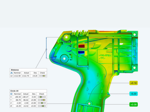 Compare scanned measurement data with nominal CAD models to accurately identify deviations. Color maps and deviation analysis ensure reliable validation of part geometry and manufacturing accuracy.