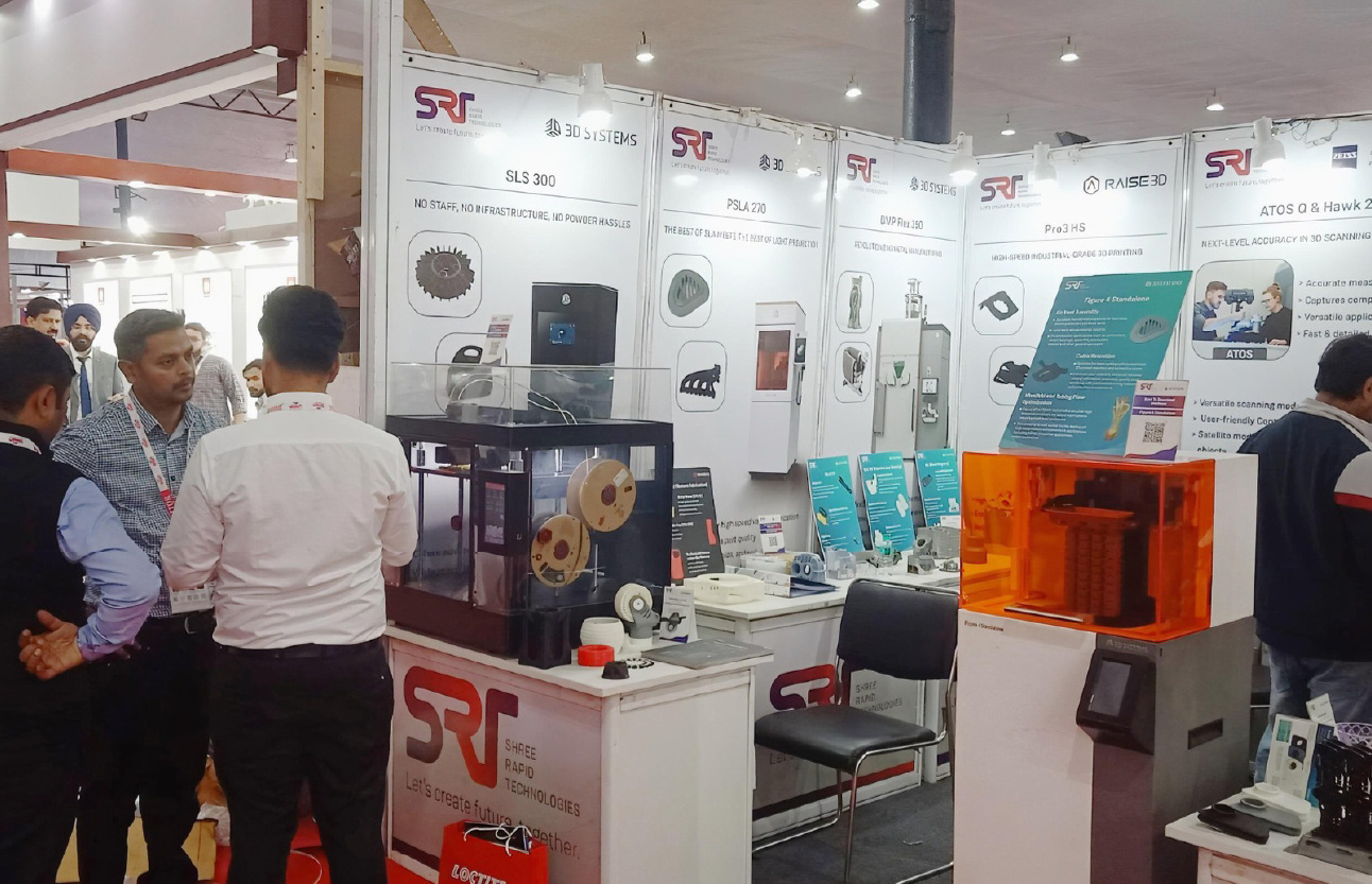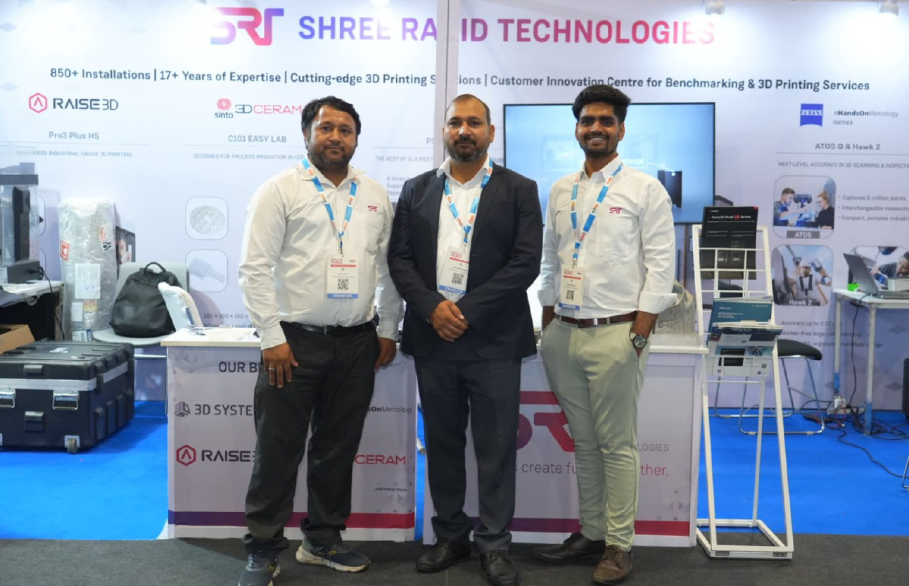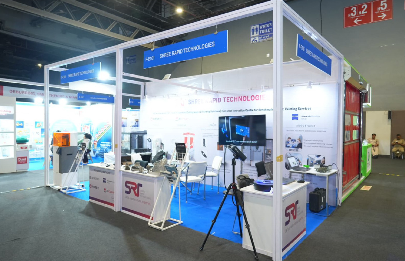 At Delhi Machine Tool Expo 2025, Shree Rapid Technologies (SRT) showcased industrial 3D printing for engineering, tooling, and production applications. We highlighted Metal 3D Printed Parts, high-precision SLA components, and complex end-use parts produced through SLS technology. The event enabled meaningful discussions with industry professionals looking to adopt advanced digital manufacturing solutions.